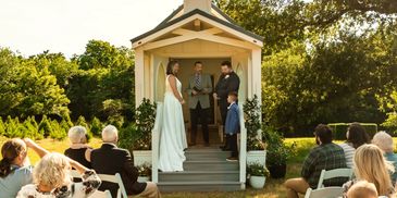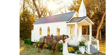 Is your dream wedding location at the family farm or overlooking your favorite pond? Let us bring the chapel to you at your preferred location. We can bring just the chapel or a whole package that includes the officiant and photographer. Click on the link below for more information.